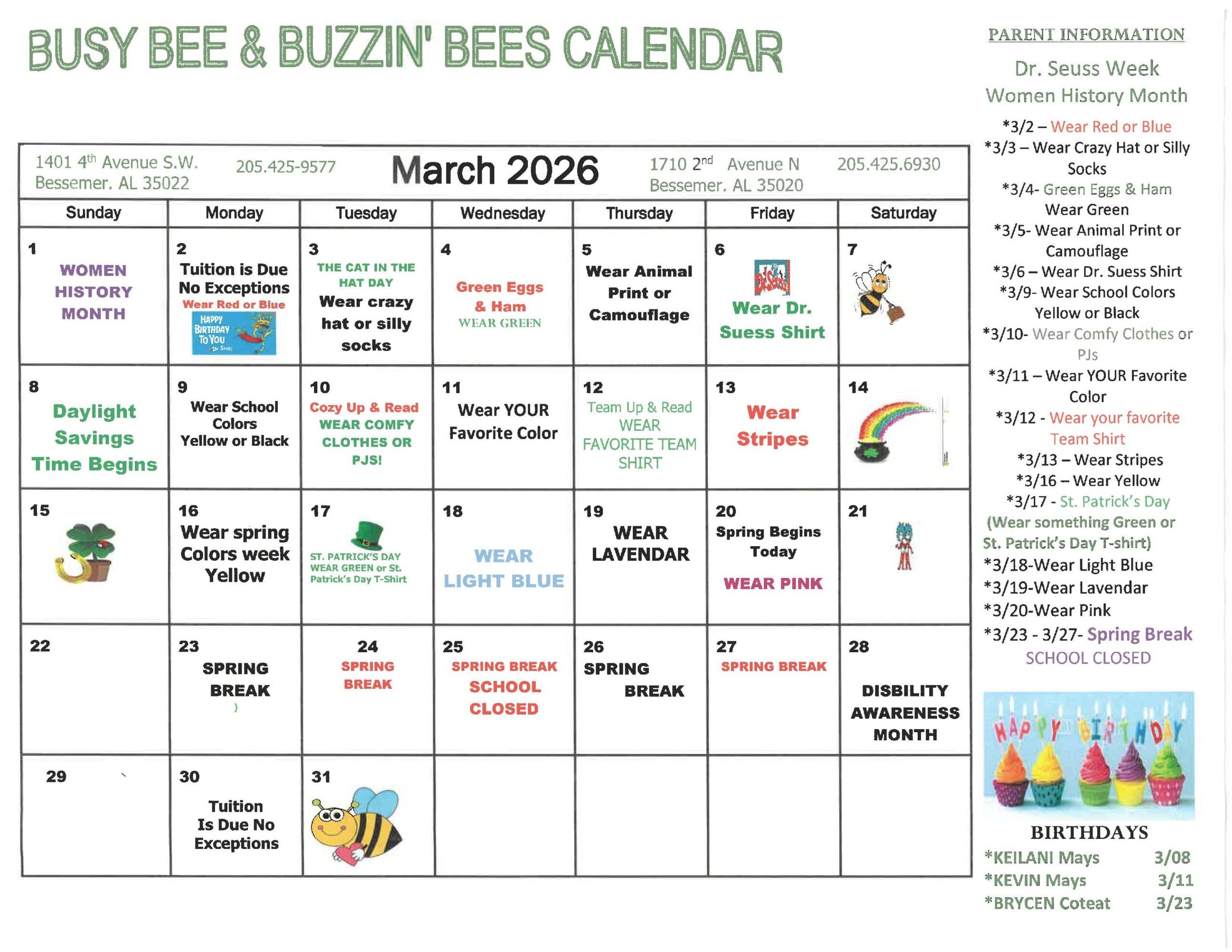 Download HereBusy Bee Academy was honored with the Bessemer Chamber of Commerce Business of the Year Award. We proudly recognize our Student of the Month, feature a Parent’s Spotlight Board, and celebrate 5th Sunday Busy Bee / Buzzin’ Bee Day at True Worship. Our academy offers both a Music Teacher and a Spanish Teacher, and we partner with organizations such as United Way of Central Alabama, Target, and Bessemer Schools, including Westhills and Empower. As members of the Chamber of Commerce, we also maintain strong relationships with the State of Alabama Legislature and State Senator. Payment options include cash, credit card, debit card, Child Care Central, and Child Care Resources.